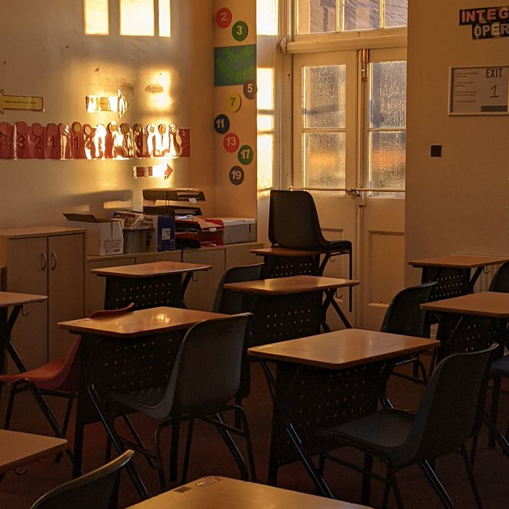 the invigilator sits in the corner of the room